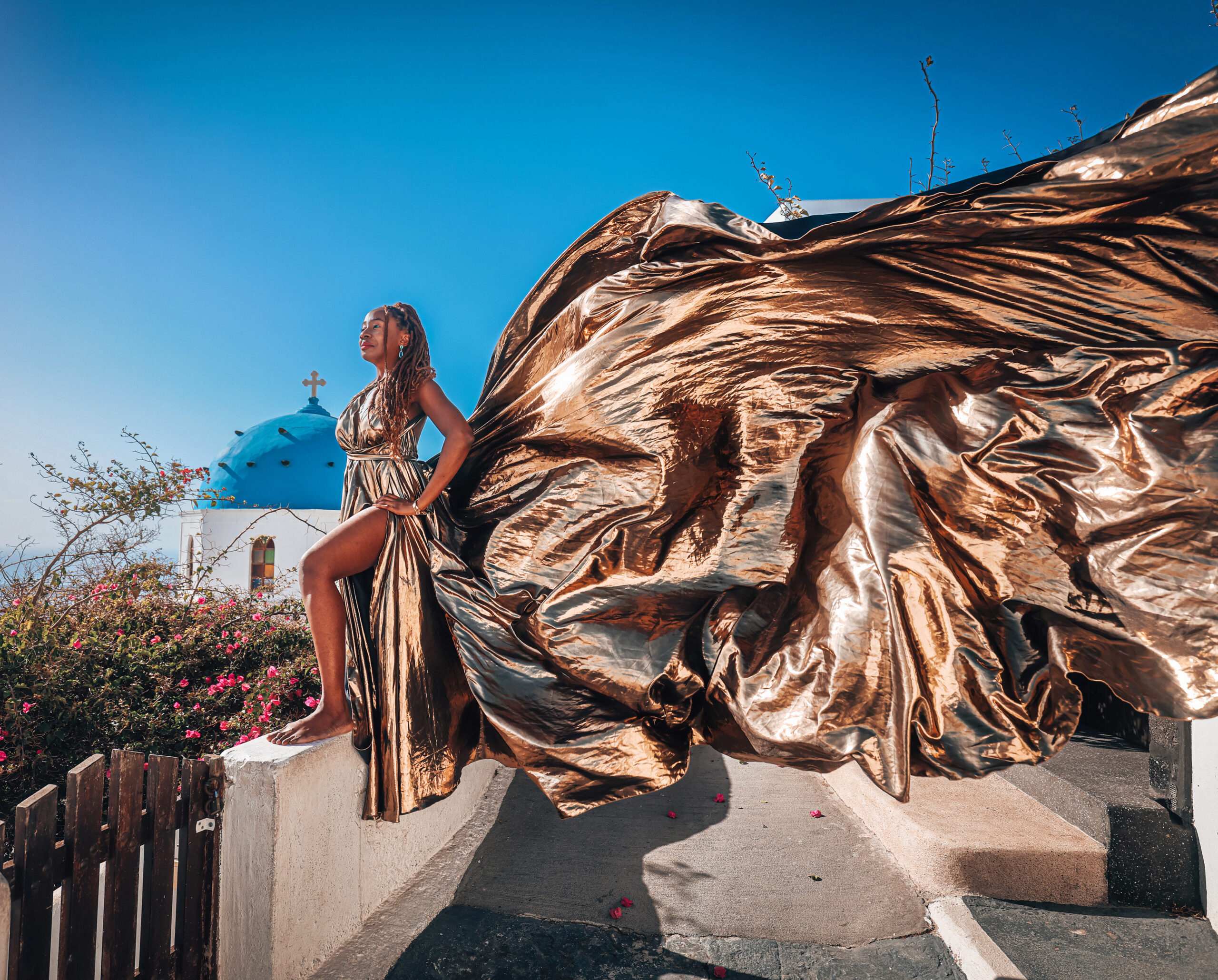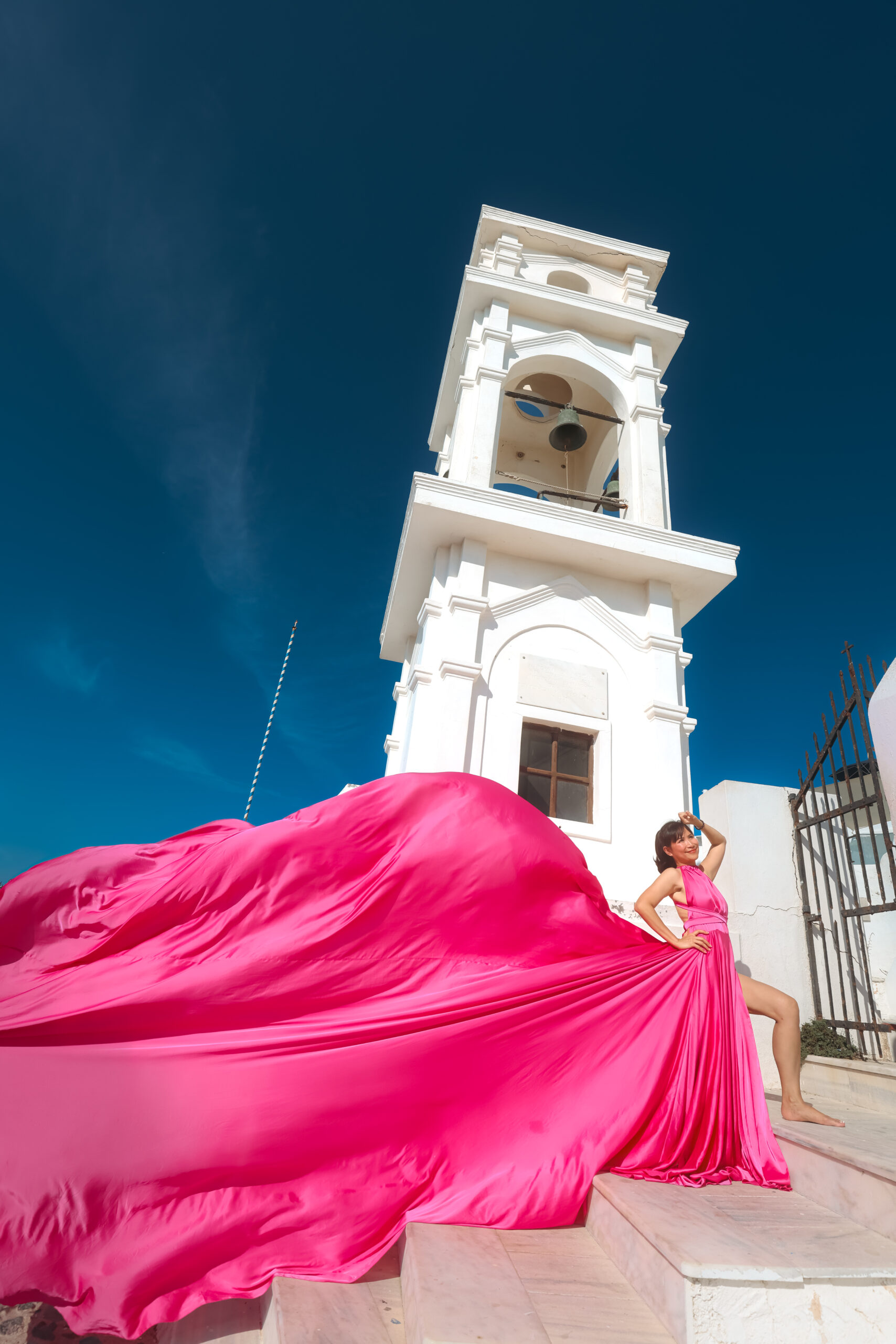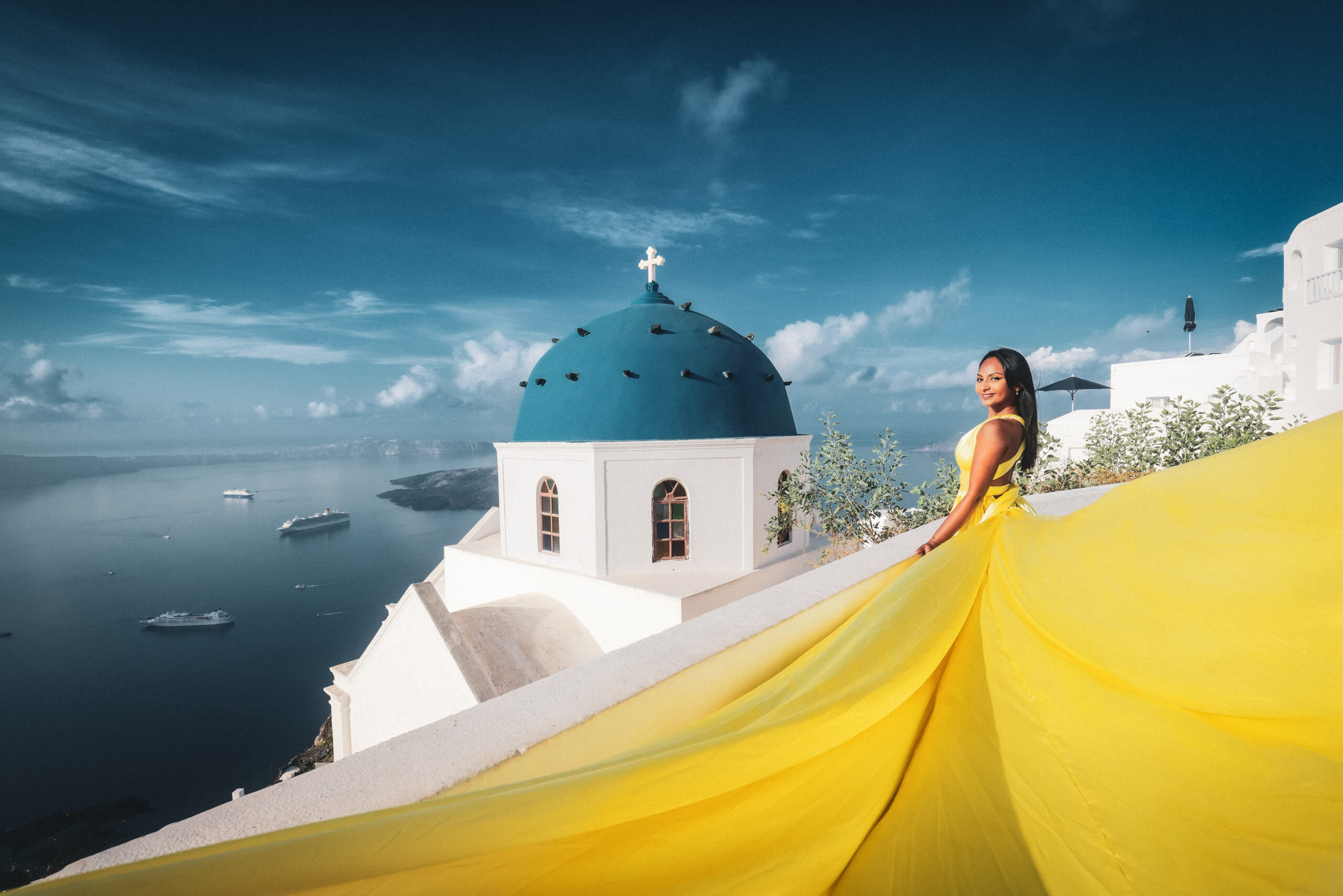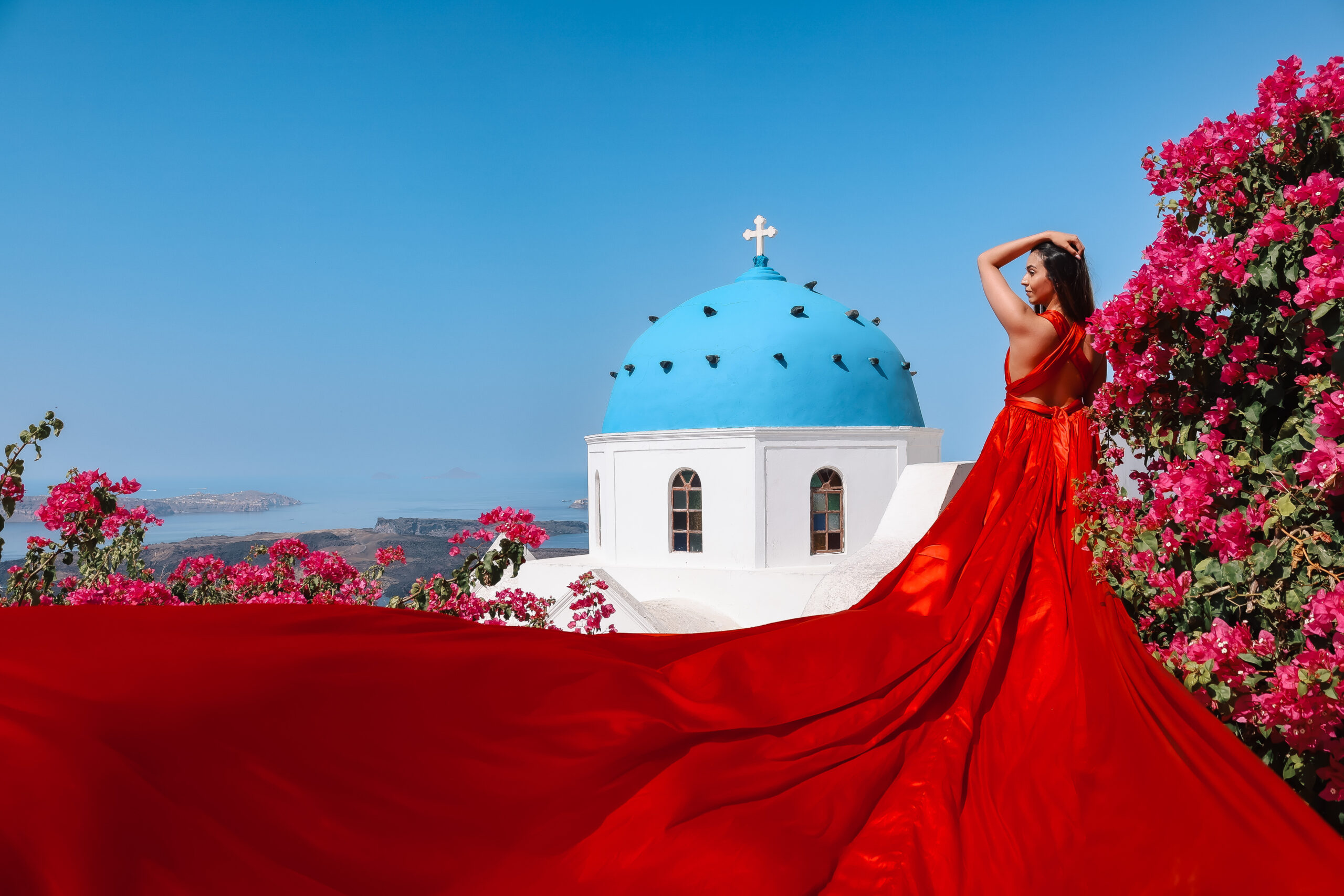 Now, let’s talk about the real MVP – your photographer. Born and raised in Santorini, they don’t just capture beautiful views; they know every nook and cranny of the island to make your photos pop. This isn’t just a photoshoot; it’s a Santorini magic show. Bright-colored dresses, picturesque locations, and your beauty stealing the show against the iconic white houses and blue domes. It’s a scene straight out of a dream.