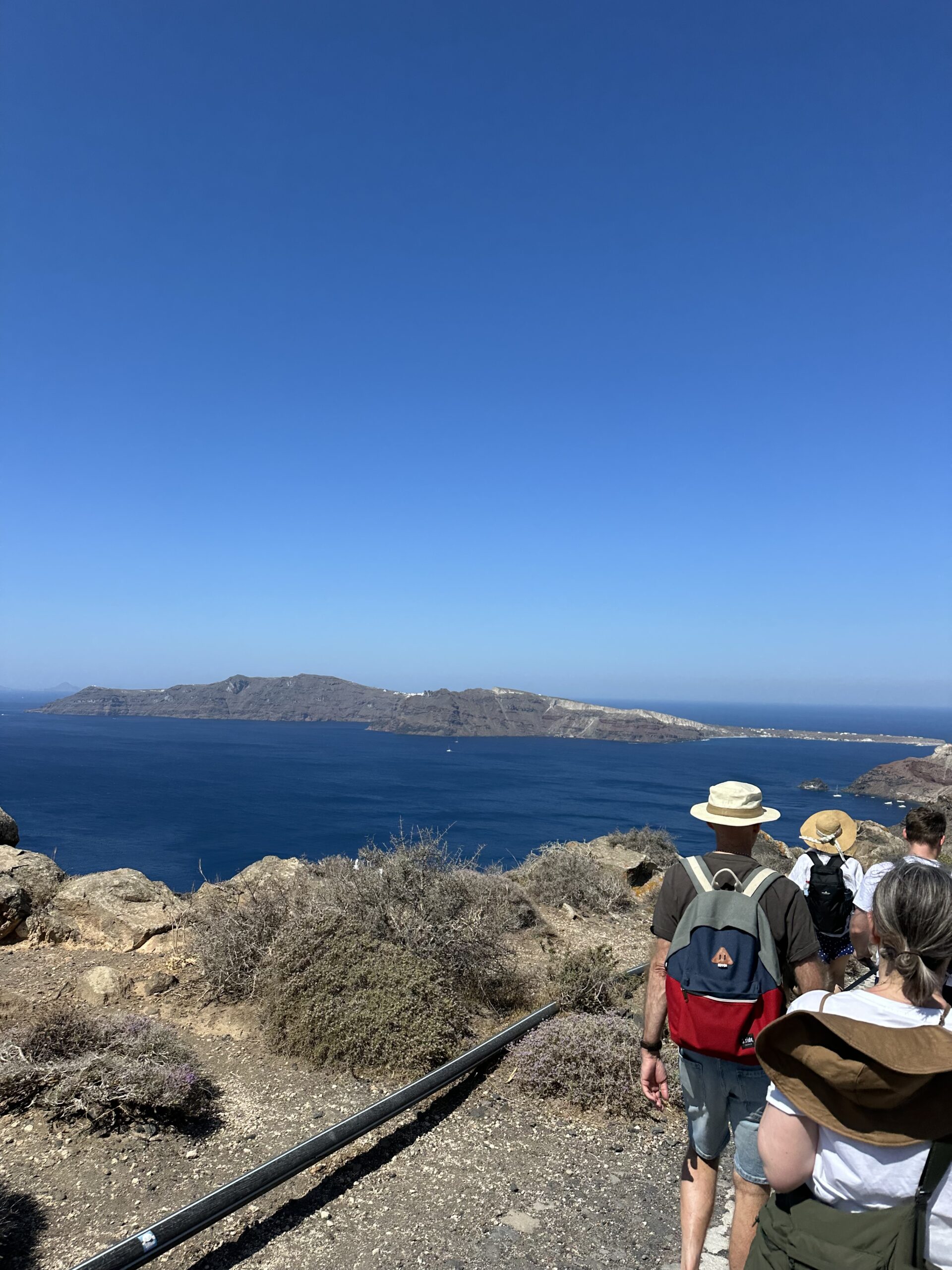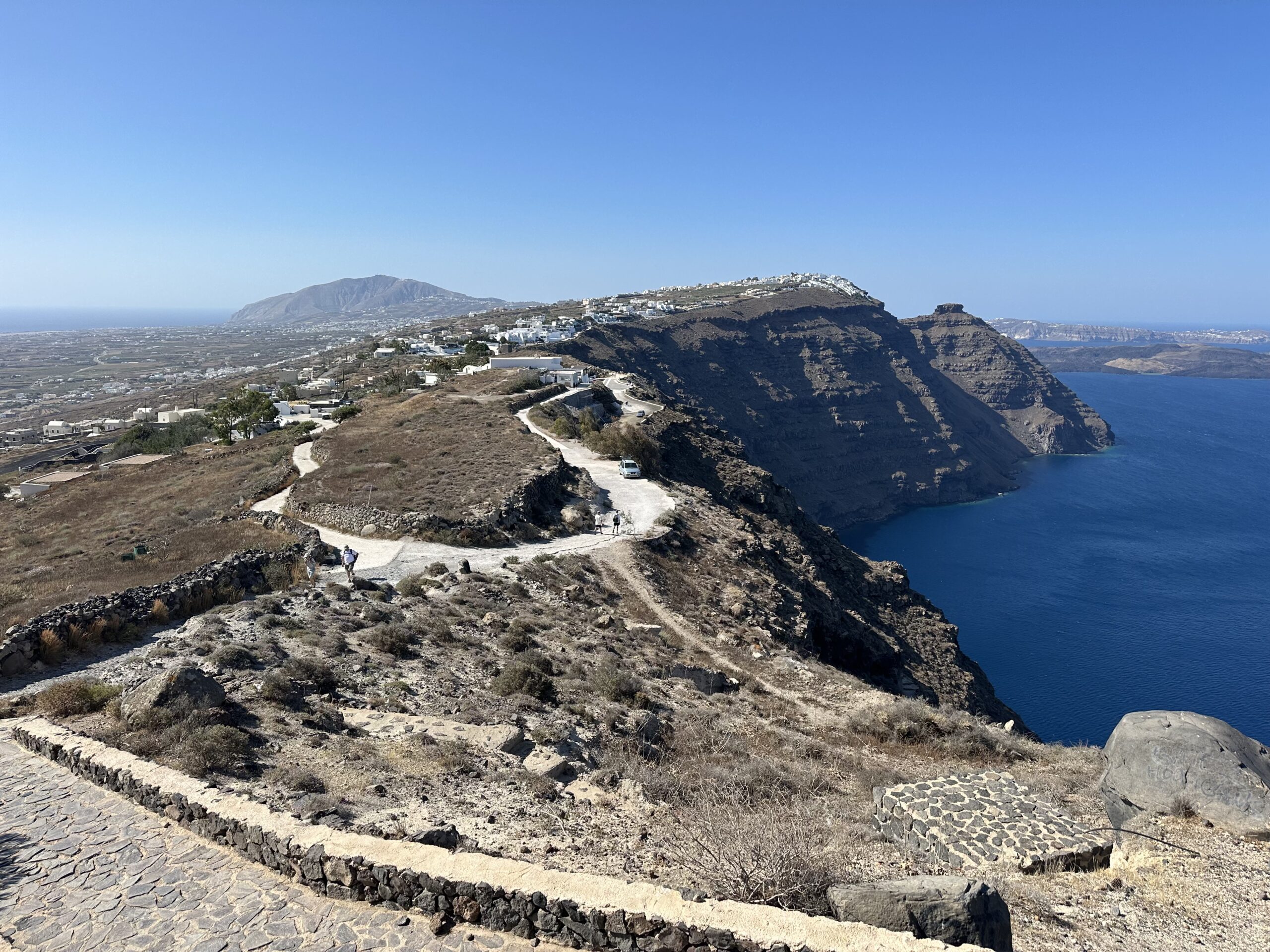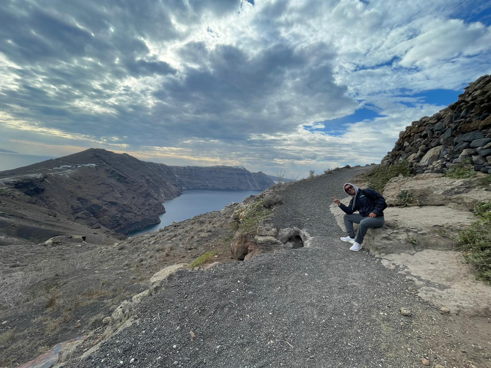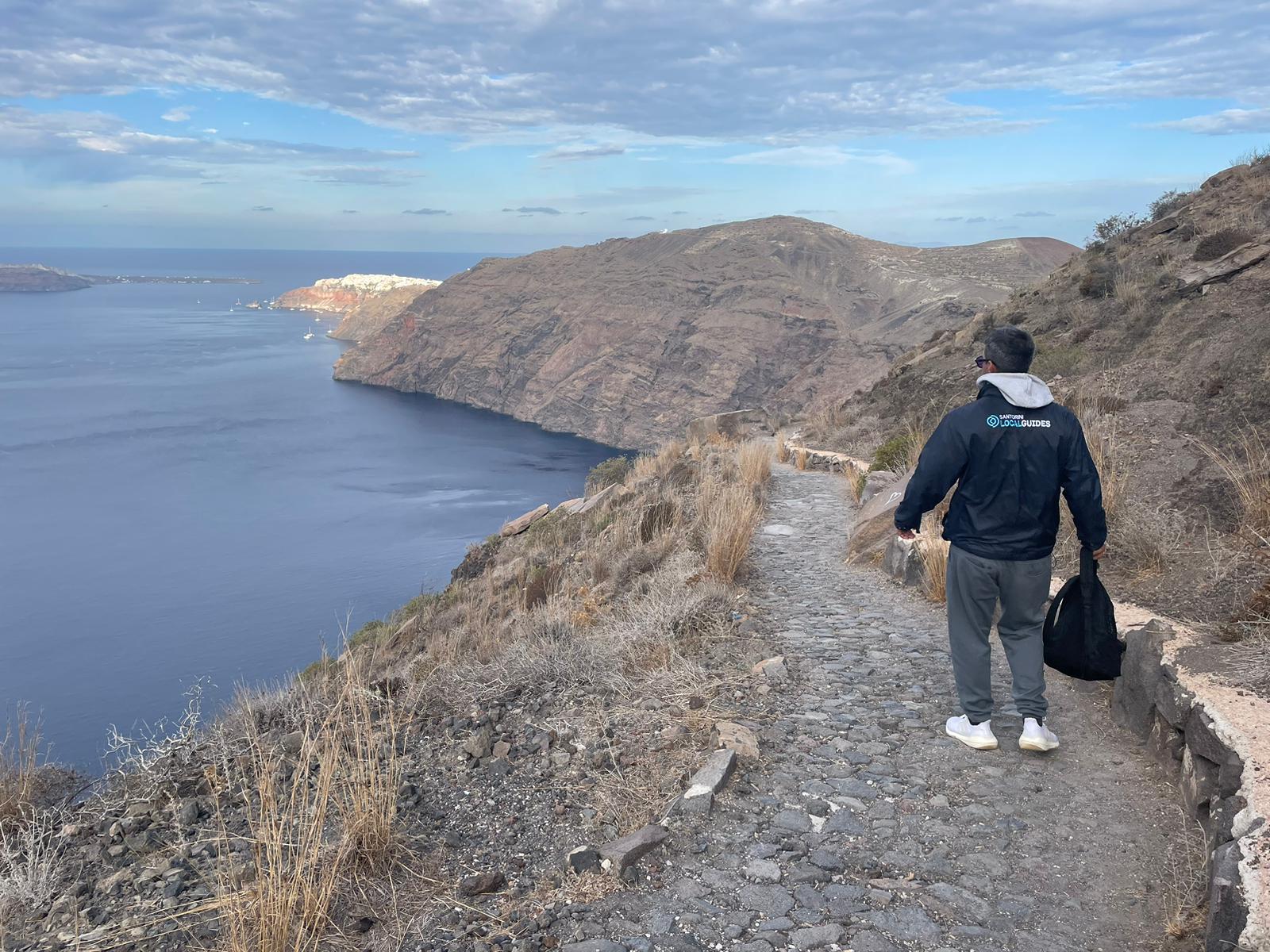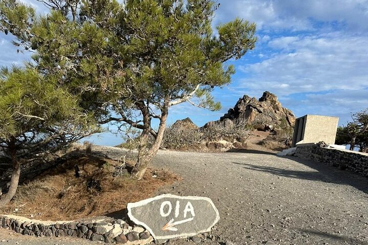 The Final Stretch Before Oia. With 3/4 of the trail behind us, this picturesque stop offers a glimpse of its whitewashed buildings and breathtaking views of the caldera as we head toward the finish line in Oia. This scenic stretch is the perfect way to soak in the serenity of Santorini before completing your adventure.