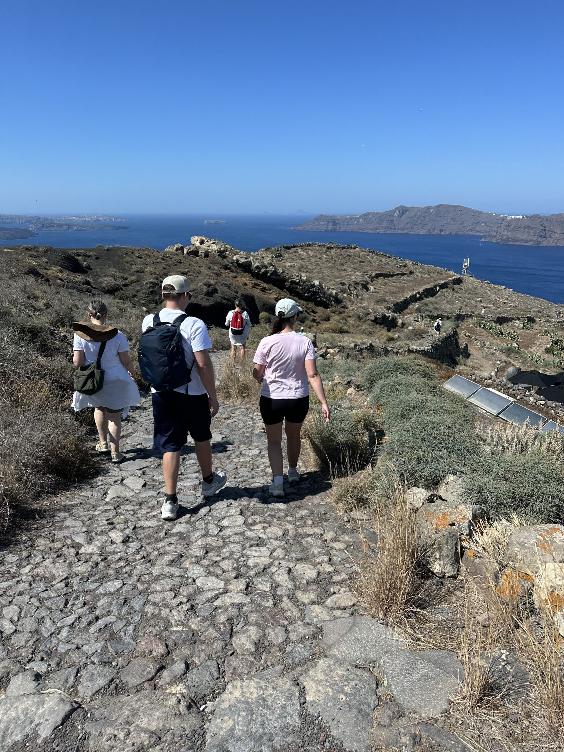 With 3/4 of the trail behind us, this picturesque stop offers a glimpse of its whitewashed buildings and breathtaking views of the caldera as we head toward the finish line in Oia. This scenic stretch is the perfect way to soak in the serenity of Santorini before completing your adventure.